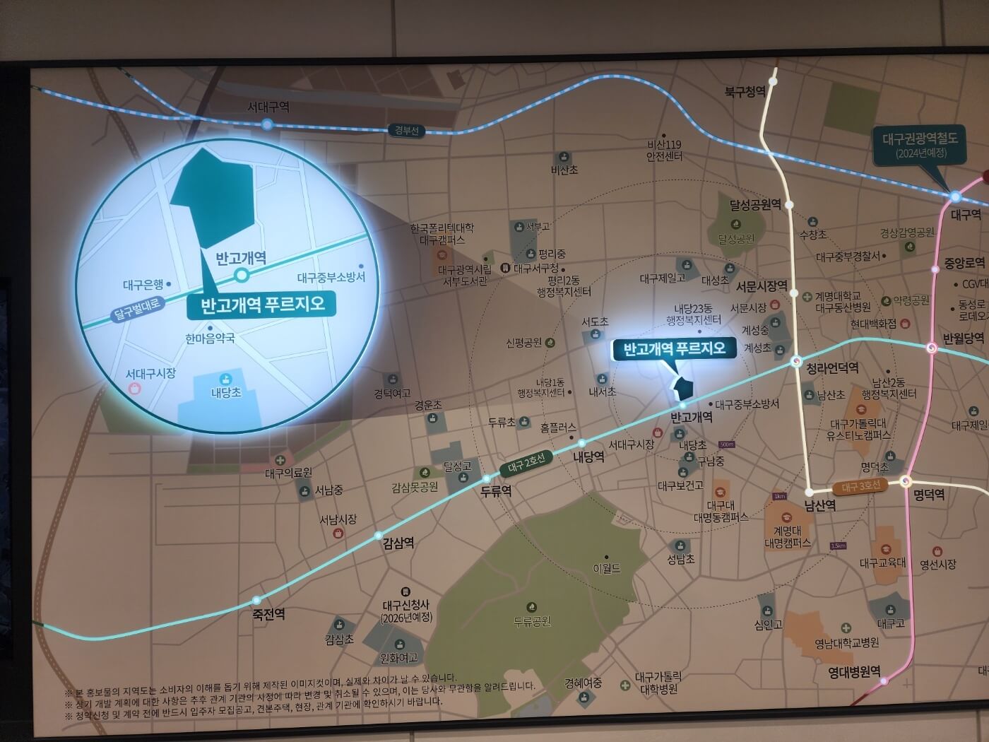 반고개역 푸르지오는 대구 중심부의 다양한 생활 인프라와 가까운 위치에 있어 높은 편의성을 제공합니다.