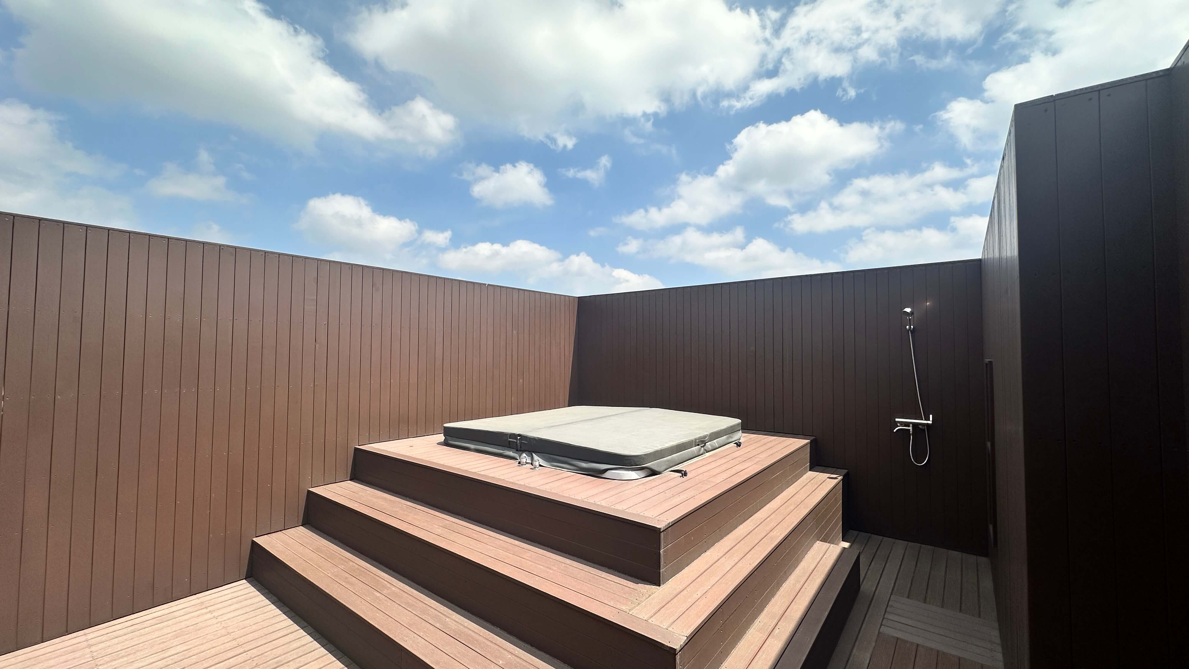 옥상 루프탑에는 스파와 가든 파티장을 설치해, 제주 자연의 풍경을 감상하며 특별한 시간을 보낼 수 있습니다. 또한 개별 정원이 있어 아늑한 힐링 공간을 제공합니다.