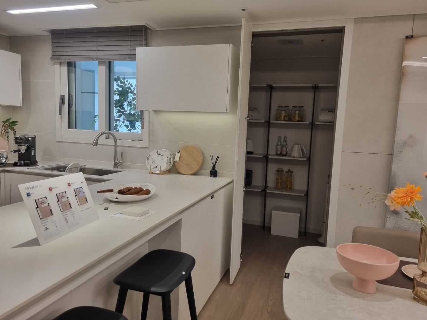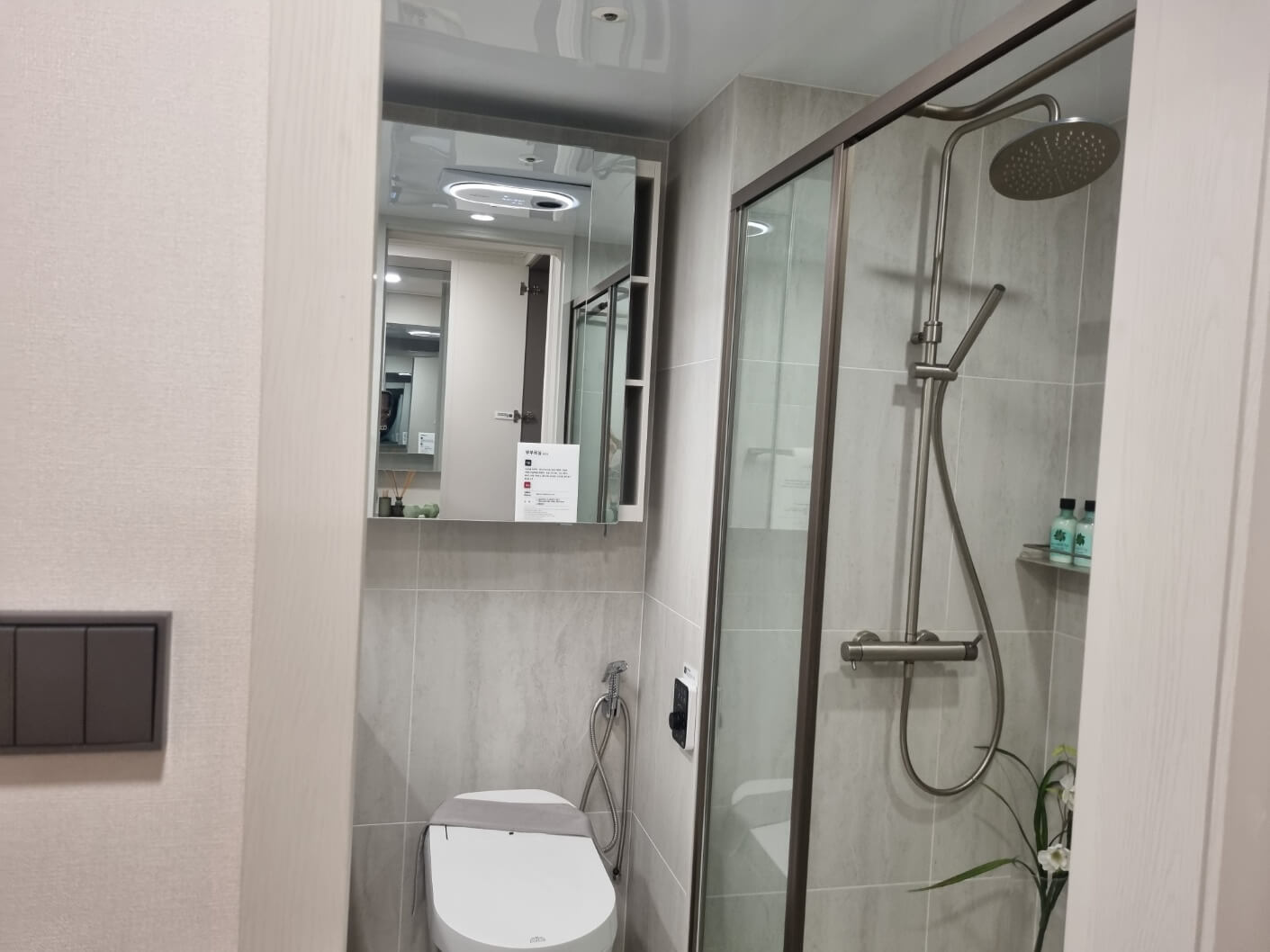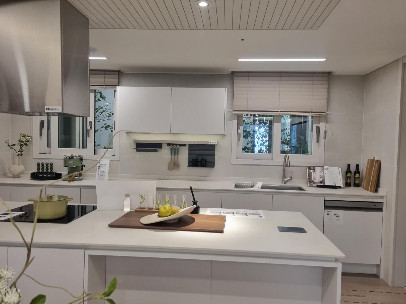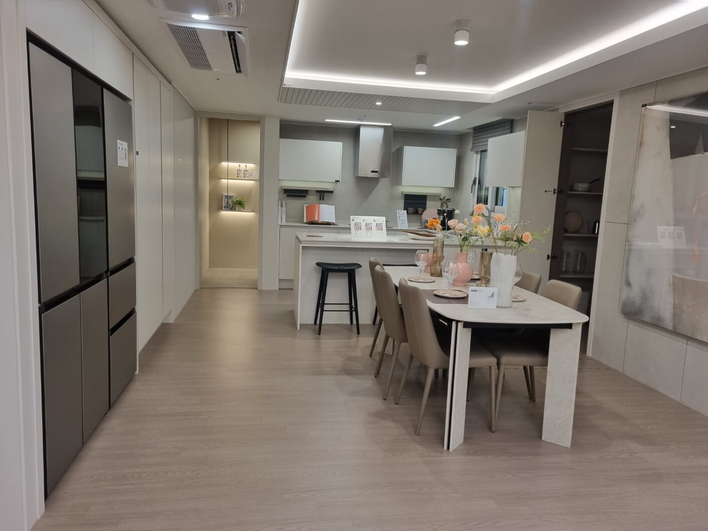 - 주방은 엔지니어드 스톤 상판, 하이브리드 쿡탑, 음식물 탈수기, 터치형 수전 등 최신 빌트인이 제공되어 생활의 편리함을 극대화했습니다.