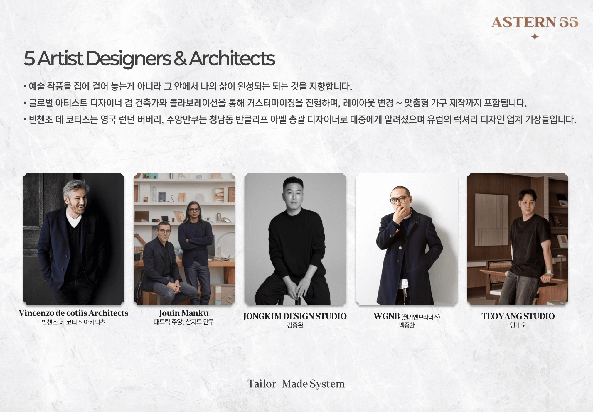 ‘디자인 셀렉션 프로그램’을 도입해 입주민이 직접 세계적인 디자이너들과 함께 자신만의 공간을 설계할 수 있도록 했습니다.
