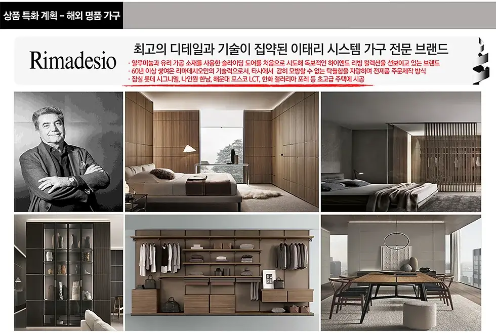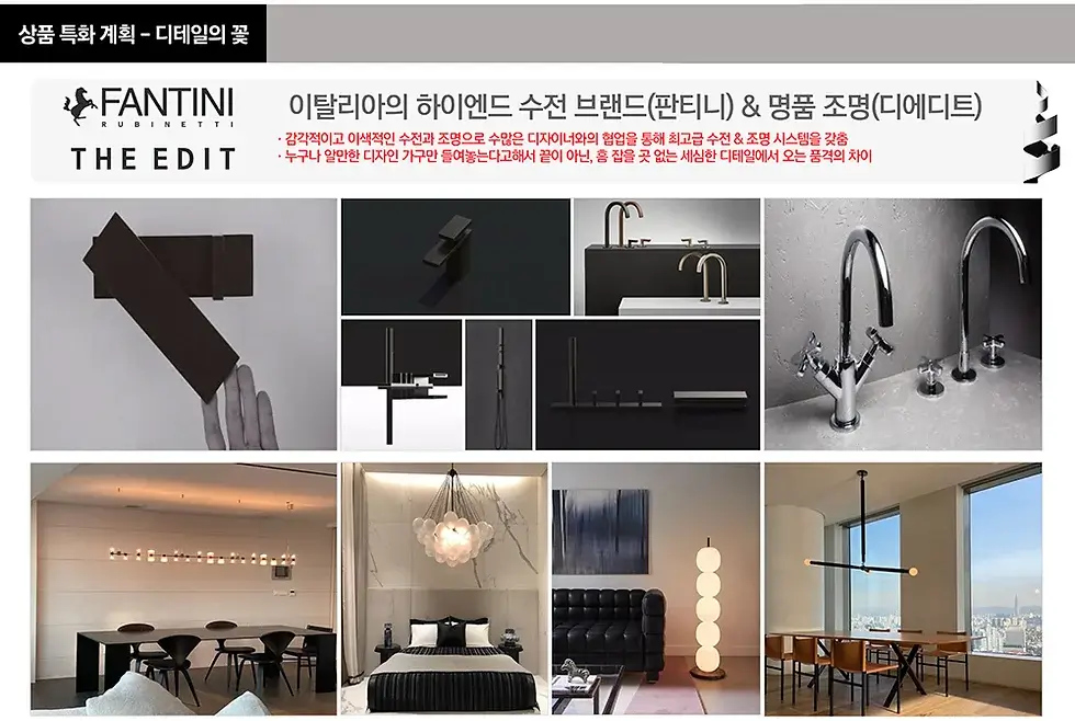 내부 인테리어는 유럽 하이엔드 리빙 브랜드가 적용되어 고급스러움을 더합니다. 주방에는 이탈리아 프리미엄 주방 브랜드 ‘모듈노바(Modulnova)’가 설치되어 있으며, 드레스룸과 화장실에는 ‘리마데시오(Rimadesio)’와 ‘판티니(Fantini)’ 브랜드가 적용되었습니다. 또한, 고급 조명 브랜드 ‘디에디트(The Edit)’와 ‘타켓(Tarkett)’ 마루 등 세심한 디테일도 놓치지 않았습니다.