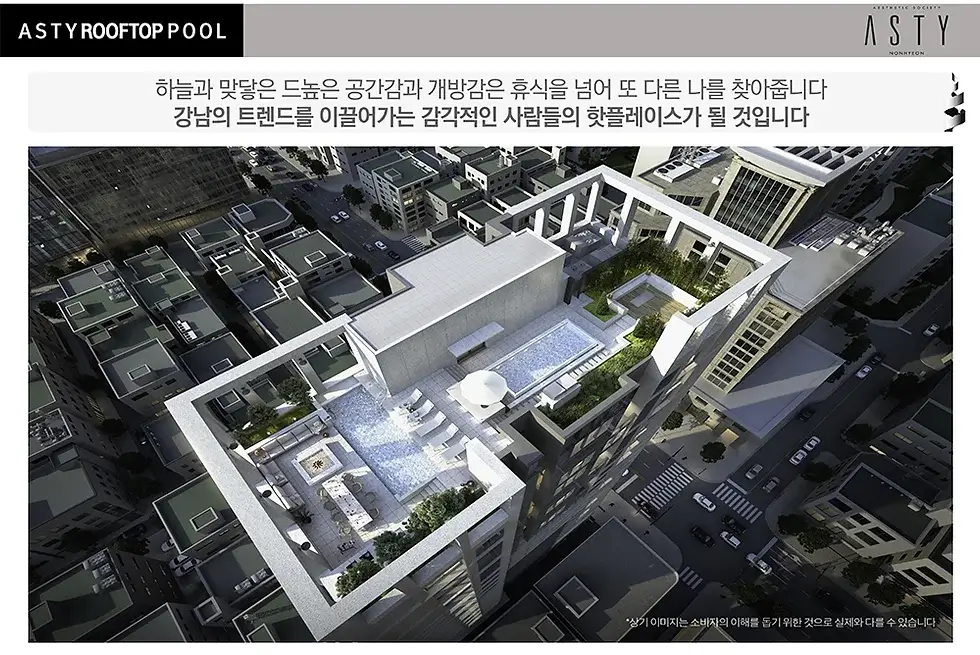 ‘아스티논현’은 제한된 공급으로 인한 프라이빗한 라이프를 제공하는 것으로 유명합니다. 오피스텔 81실은 전용면적 48~57㎡의 넓은 주거공간을 제공하며, 단지 내의 커뮤니티 시설 역시 입주민만을 위한 고급 서비스를 제공합니다. 특히, 최상층 루프탑은 이국적인 분위기를 연출해 입주민들이 프라이빗한 파티를 즐길 수 있는 공간을 제공합니다. 또한, 개인 레슨이 가능한 요가, 필라테스 스튜디오, 스파 시설 등 건강과 여가를 위한 공간들도 마련되어 있습니다.
