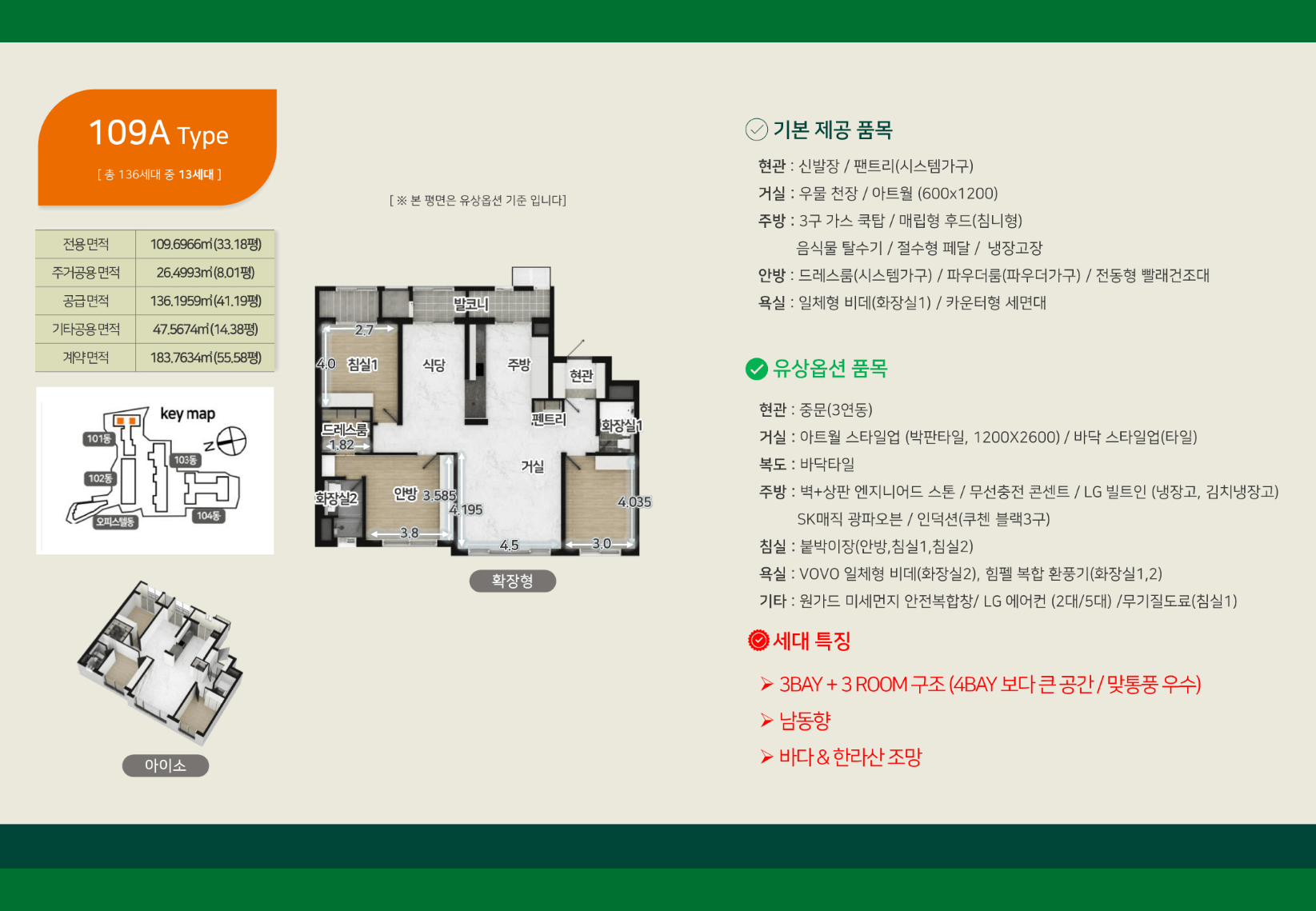 거실 창을 열었을 때 시원하게 펼쳐지는 오션뷰, 그리고 아침마다 안방 창문으로 들어오는 한라산의 웅장한 자태. 이 두 가지를 동시에 누릴 수 있는 생활은 그 자체로 프리미엄입니다. 특히 남서향 배치가 69%를 차지해 바다를 향한 시야가 확보된 세대가 많아, 주거 만족도가 배가될 수밖에 없습니다.