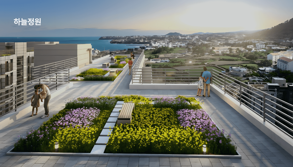 거실 창을 열었을 때 시원하게 펼쳐지는 오션뷰, 그리고 아침마다 안방 창문으로 들어오는 한라산의 웅장한 자태. 이 두 가지를 동시에 누릴 수 있는 생활은 그 자체로 프리미엄입니다. 특히 남서향 배치가 69%를 차지해 바다를 향한 시야가 확보된 세대가 많아, 주거 만족도가 배가될 수밖에 없습니다.