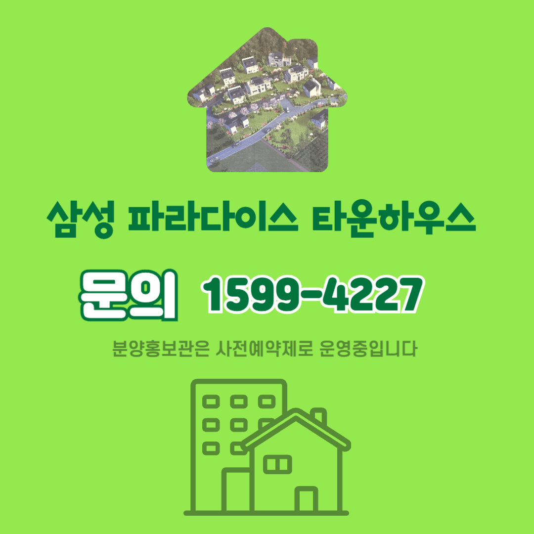 삼성 파라다이스 타운하우스는 선착순 분양 방식으로 진행됩니다. 홍보관 방문은 사전 예약제로 운영되며, 당일 예약이나 방문 상담은 불가합니다. 상세 정보와 문의는 공식 연락처를 통해 확인 가능합니다.