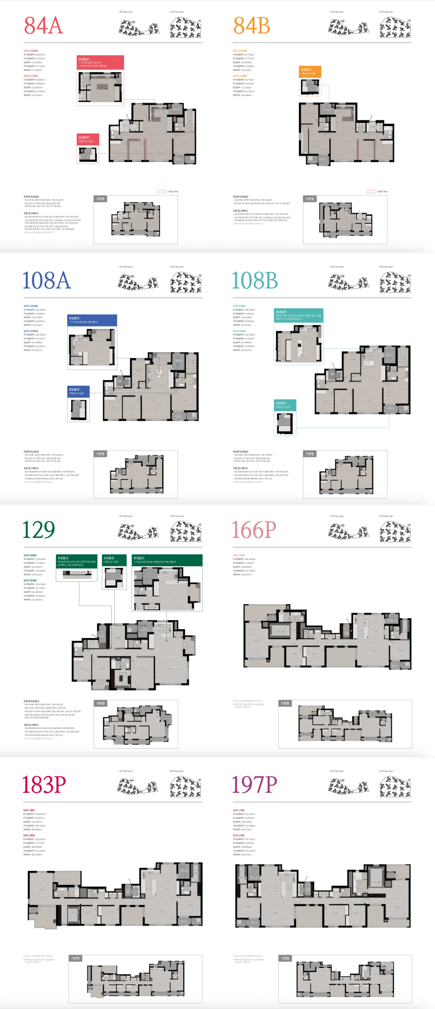 위파크 제주 오등봉공원은 총 7가지 타입으로 세분화된 평형대를 제공합니다. 84㎡부터 183㎡, 197㎡까지 다양한 평형 선택이 가능하며, 대형 평형대는 희소성 있는 옵션으로 많은 관심을 받고 있습니다. 모든 세대가 4베이 판상형으로 설계되어 개방감을 극대화했으며, 남향 위주 동배치를 통해 채광을 최적화했습니다. 특히, 4베이 구조와 맞통풍 설계로 쾌적한 실내 환경을 유지할 수 있도록 하였고, 알파룸과 팬트리, 드레스룸 등의 넉넉한 수납공간을 제공합니다.