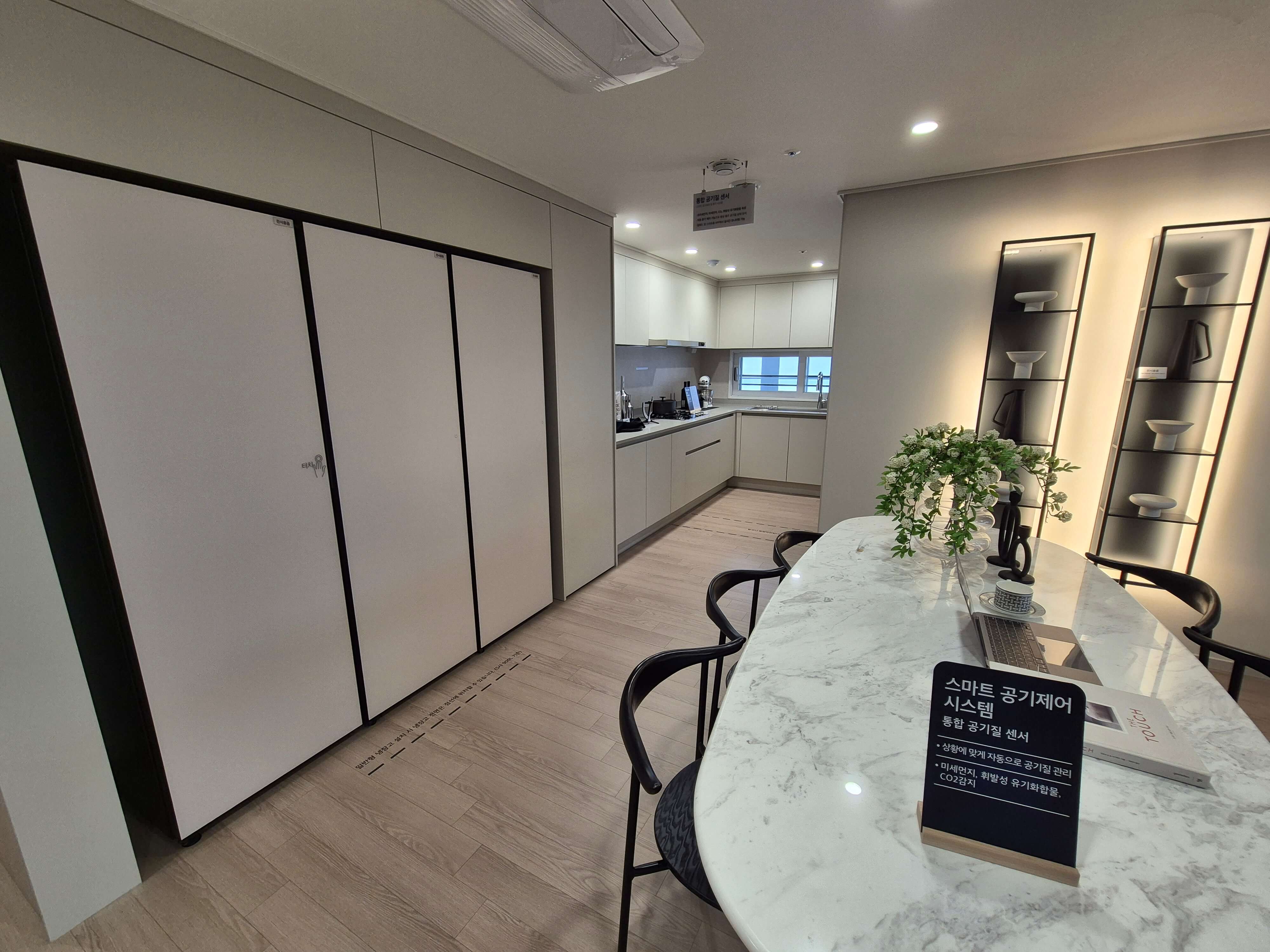또한 이중창호, 단열 강화, LED 조명, 일괄소등 스위치 등 에너지 절감 설계가 적용되었으며, 공기질 센서·렌지후드 연동 환기 시스템·스마트홈 IoT 기능으로 쾌적하고 효율적인 생활이 가능합니다.