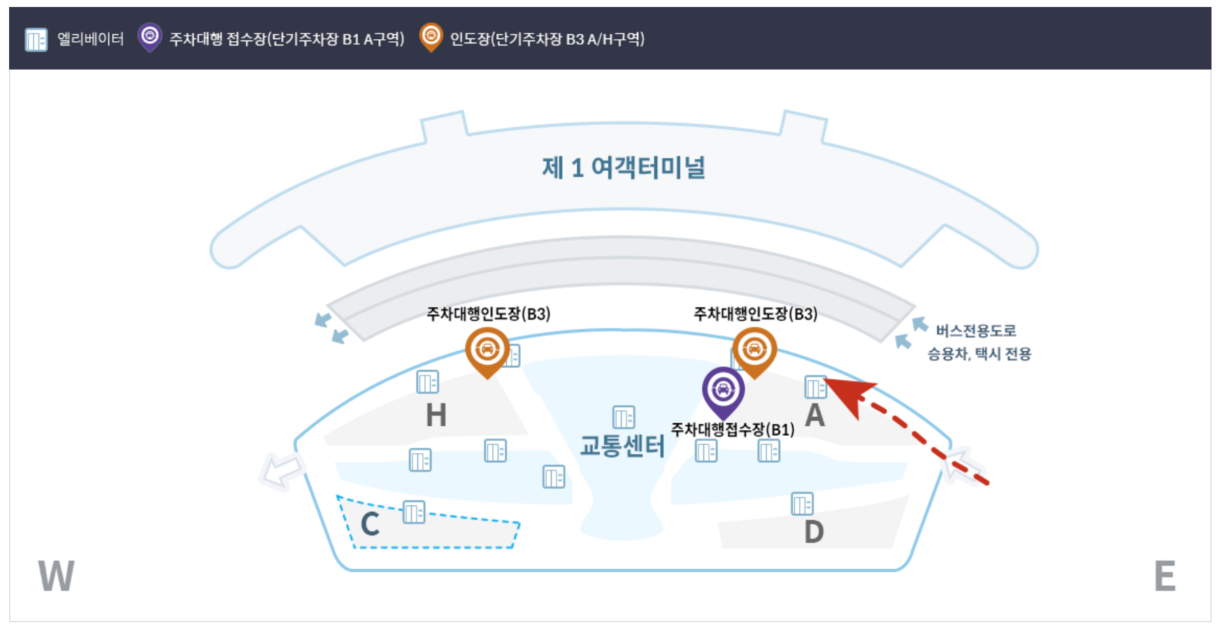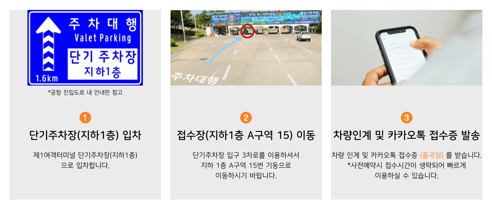 차량을 맡길 때는 단기주차장 지하 1층 A구역으로 진입해 접수요원에게 차량을 인도하면 끝입니다. 모바일 확인 문자가 즉시 발송되므로 안심할 수 있고, 예약을 미리 해두면 접수 시간도 대폭 줄어듭니다. 귀국 후에는 접수증에 안내된 정산소로 이동해 키오스크에서 요금을 결제하고 차량 키를 수령하면 됩니다.