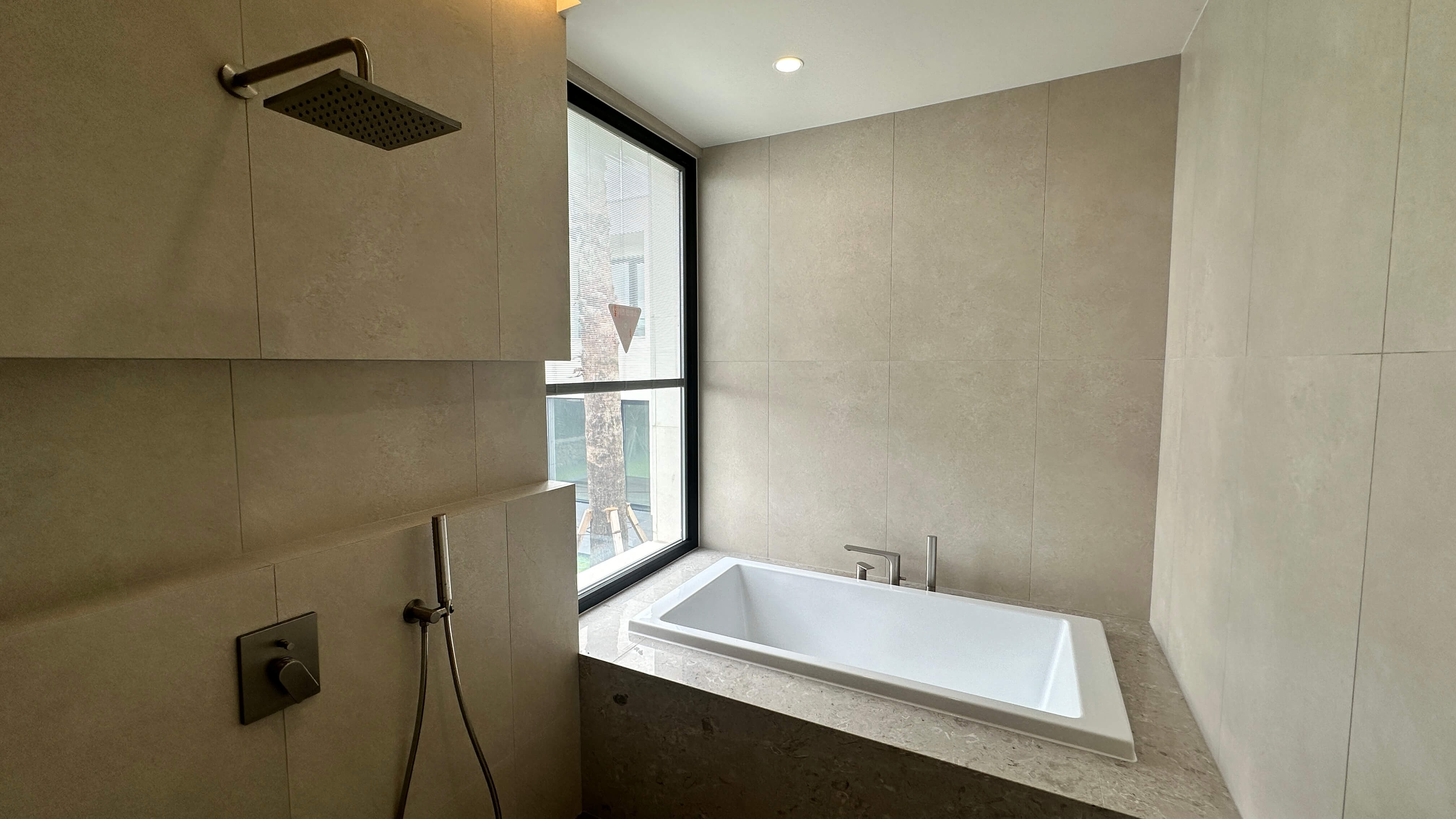 2층에는 방 4개, 욕실 3개, 세탁실, 테라스가 위치해 있습니다. 마스터룸은 넉넉한 공간을 자랑하며, 고급스럽게 시공된 욕실과 함께 호텔 수준의 품격을 제공합니다. 첫 번째 방은 서재로 사용하기에 좋으며, 세탁실에는 워시타워가 기본 옵션으로 제공됩니다. 작은 방 2개는 침실, 붙박이장, 파우더룸, 책상, 전용 욕실을 갖추고 있어 독립적이고 편리한 생활이 가능합니다.