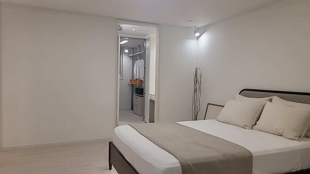 드레스룸, 팬트리, 다용도실 등을 제공하여 수납 문제를 해결했습니다. 실용성과 공간 활용 면에서 고급 아파트 수준의 구성을 보여줍니다.