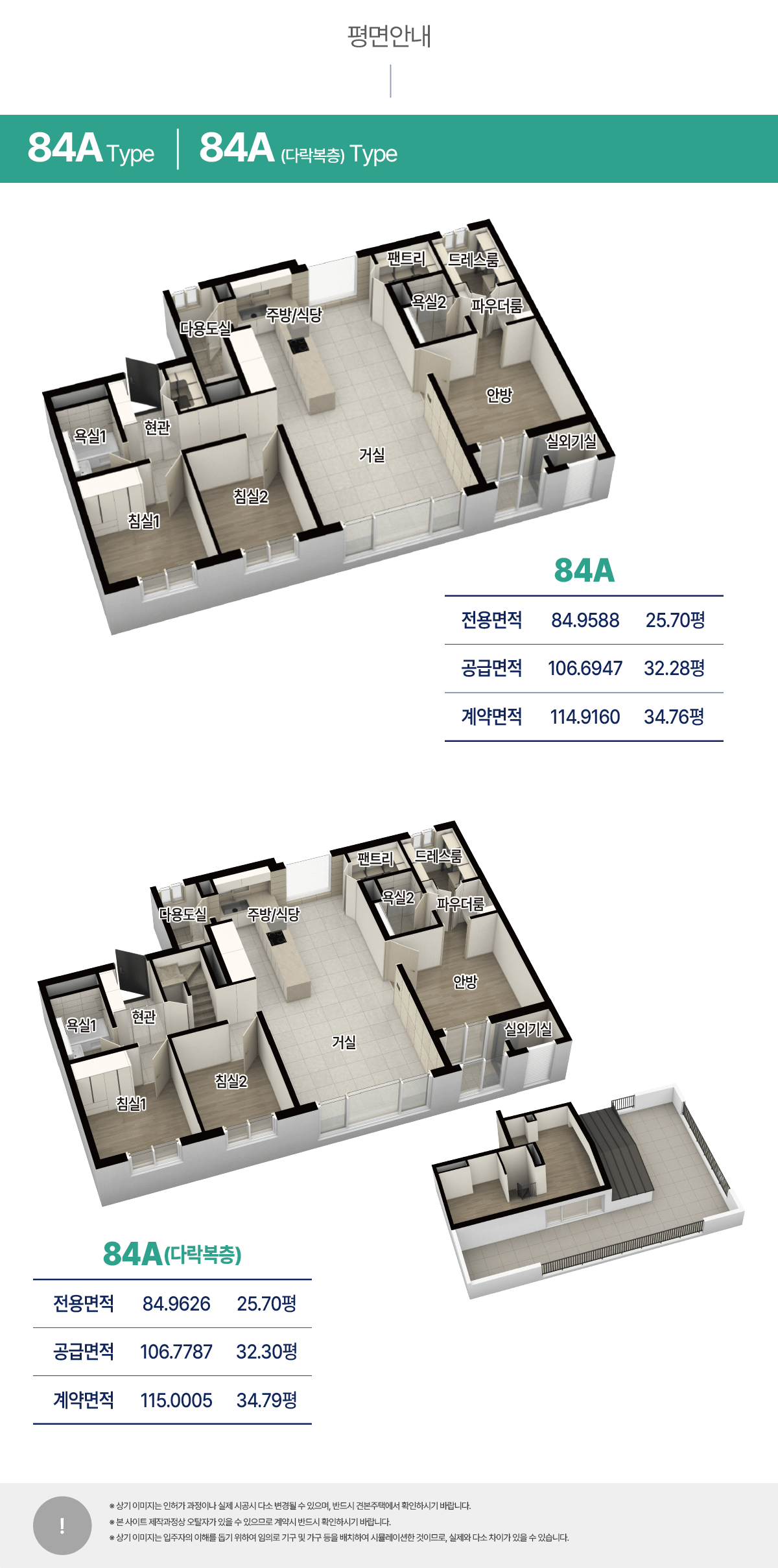 제주 아테라는 전 세대가 전용면적 84㎡ 단일타입으로 구성되어 있으며, 내부 구조는 A형, B형, 복층형까지 다양하게 구성되어 있습니다.