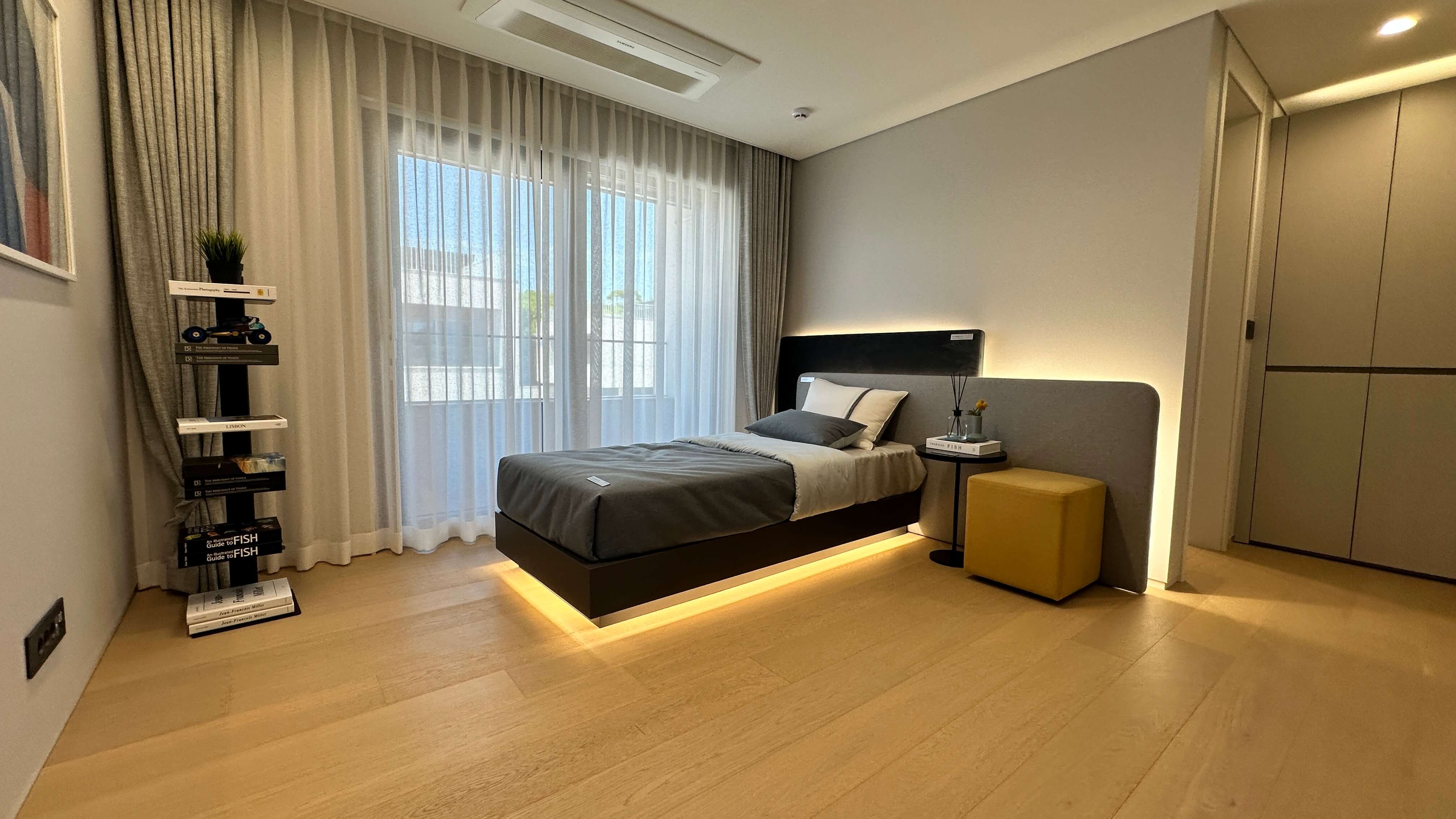 포레팰리스 타운하우스의 다락방은 성인이 설 수 있는 높이로 설계되어 넓은 활용도를 자랑합니다. 아이들의 놀이방으로 활용할 수 있으며, 수납공간도 넉넉해 가족들의 다양한 활동을 수용할 수 있습니다. 에어컨이 설치되어 있어 사계절 내내 쾌적하게 사용할 수 있습니다.