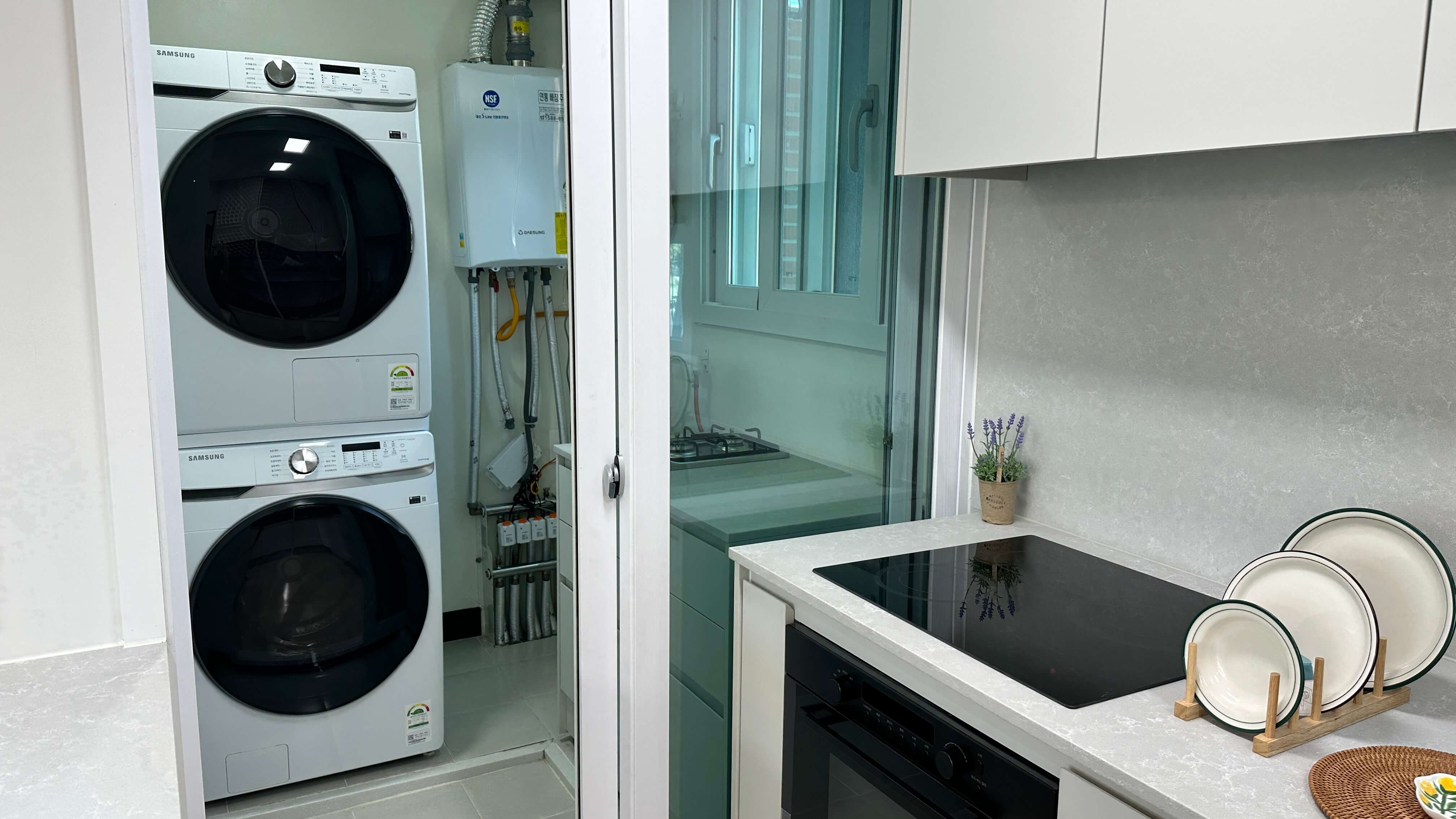 두 타입 모두 LG 시스템 에어컨, 식기세척기, 하이브리드 쿡탑, 광파 오븐, 아일랜드 식탁 등 고급 옵션을 기본으로 제공하여 편안한 생활을 지원합니다.