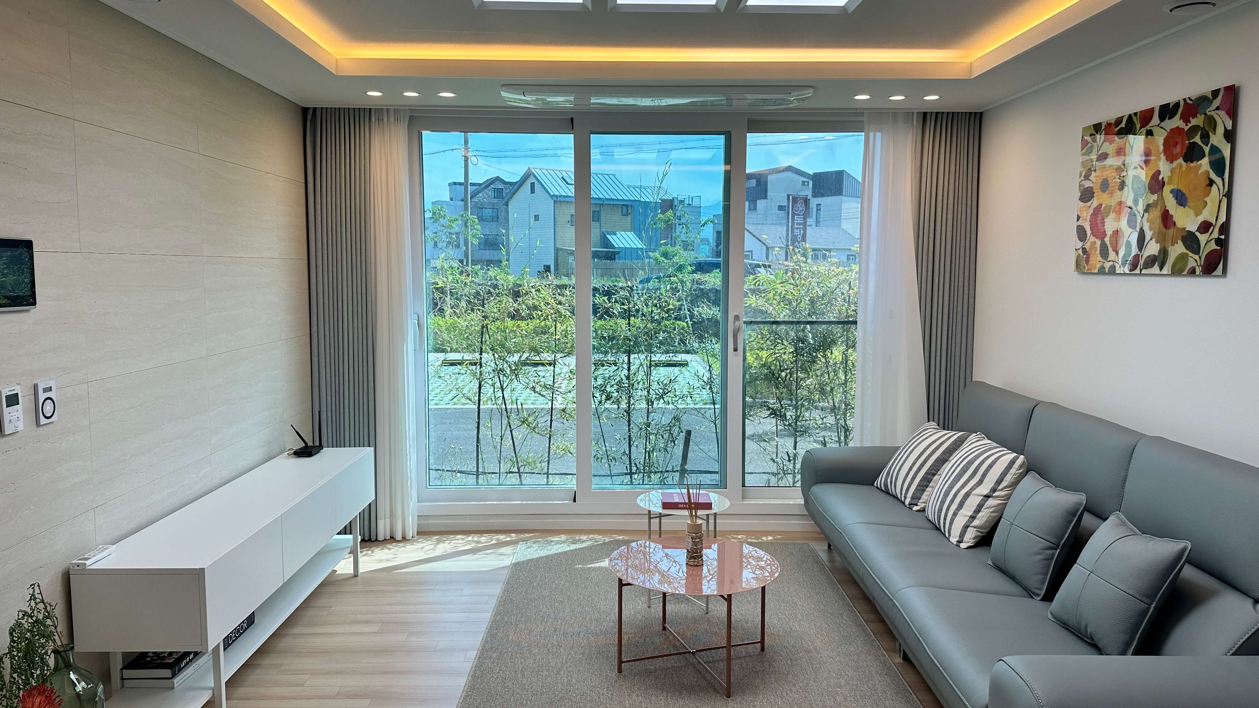 주민을 위한 커뮤니티 시설로 피트니스센터와 게스트하우스가 제공되며, 주거 환경을 더욱 쾌적하게 만드는 단지 내 보안 시스템도 마련되었습니다. 최상층에는 복층과 옥상 테라스가 있어 아름다운 제주 자연을 만끽할 수 있는 여유로운 공간을 제공합니다.