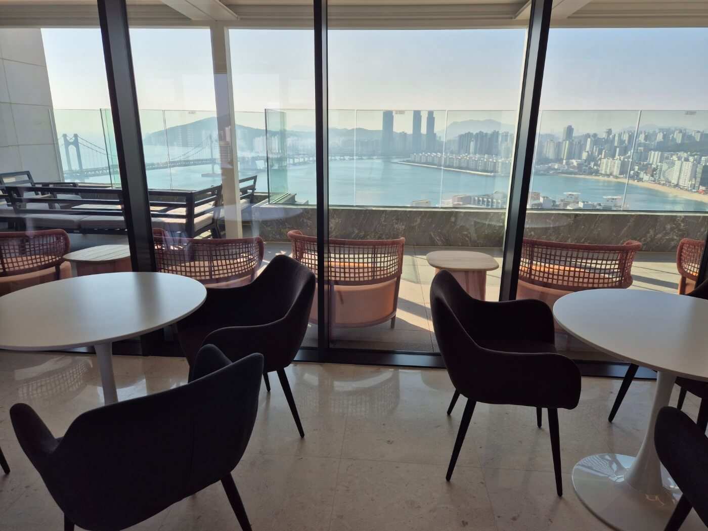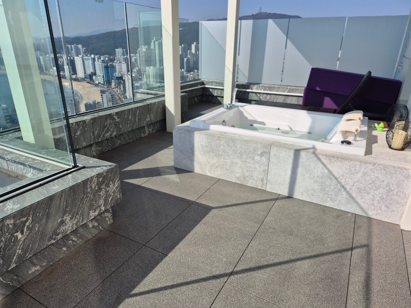 - 난간 설계: 유리 난간을 적용해 시야를 확보하며, 해안가 특성상 부식 걱정을 덜 수 있습니다.