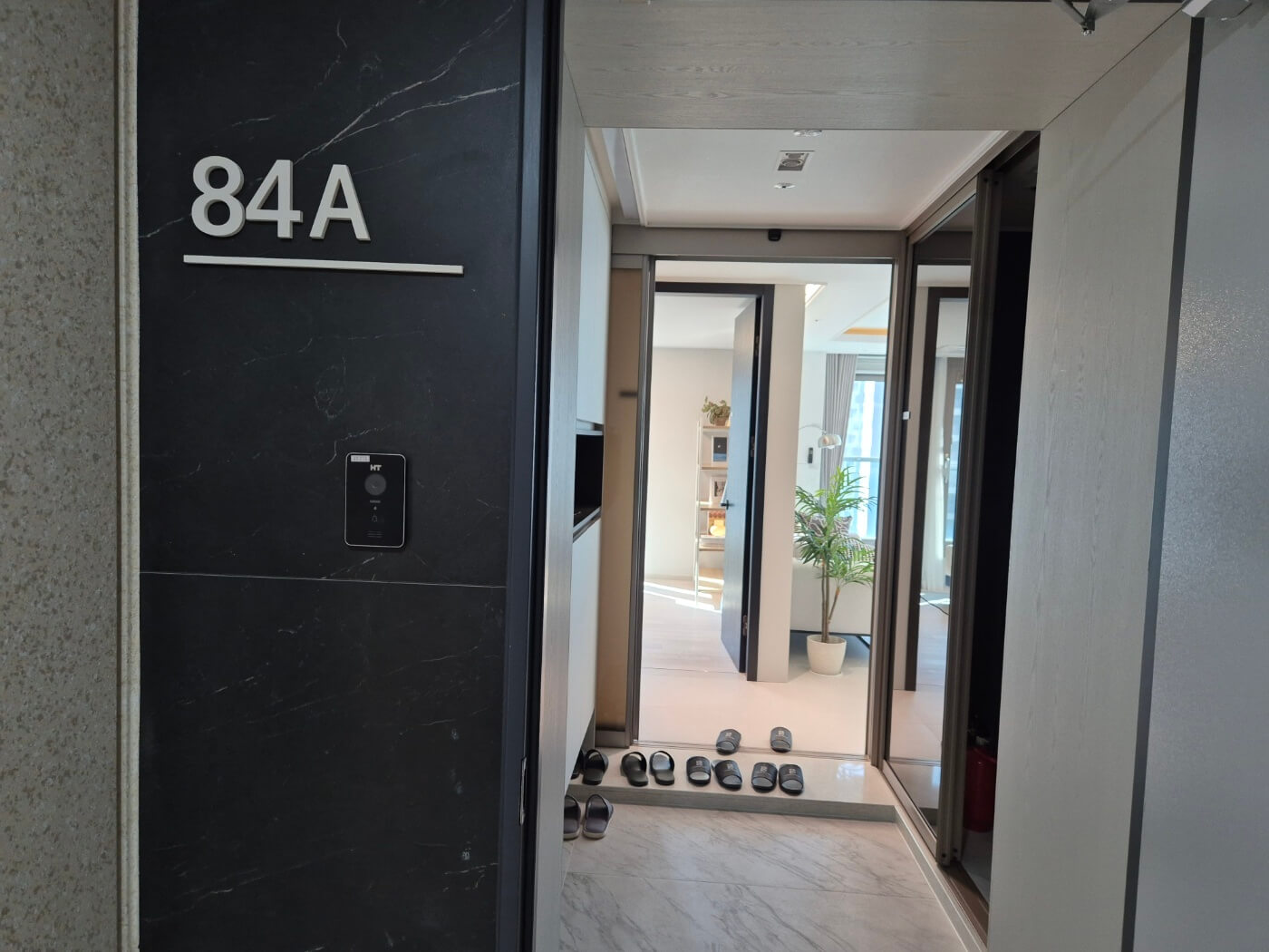 현관 구조가 독특하게 설계되어 복도에서 내부가 보이지 않으며, 안방과 자녀 방이 대각선으로 배치되어 있어 가족 구성원 간 프라이버시를 보호합니다.
