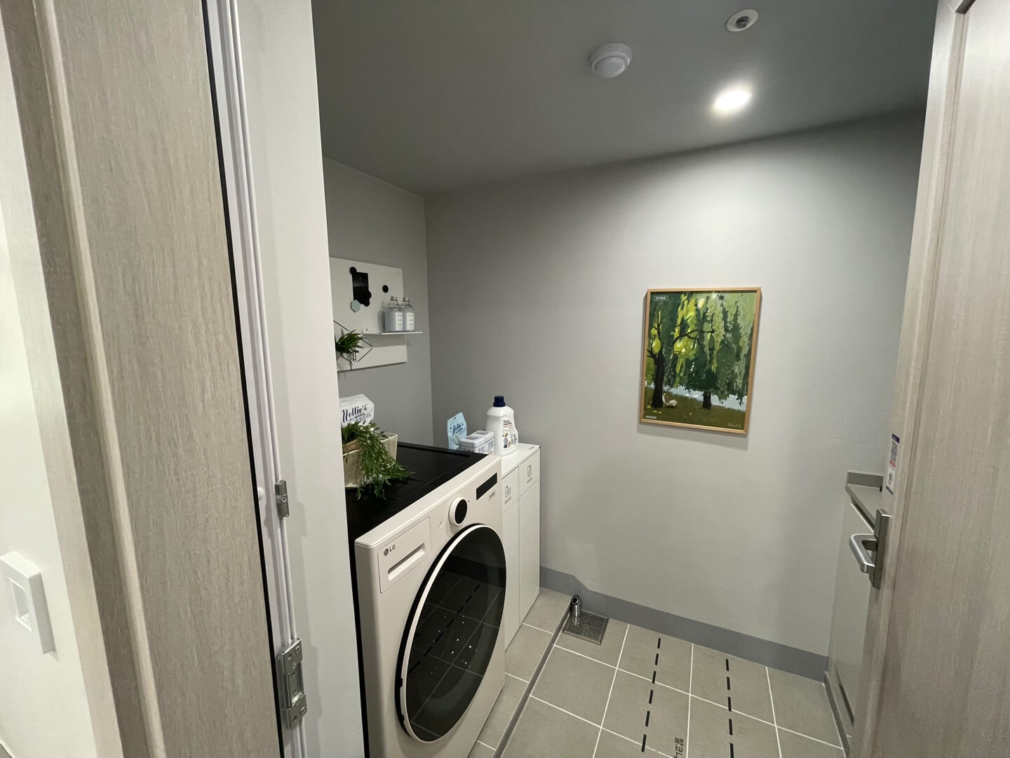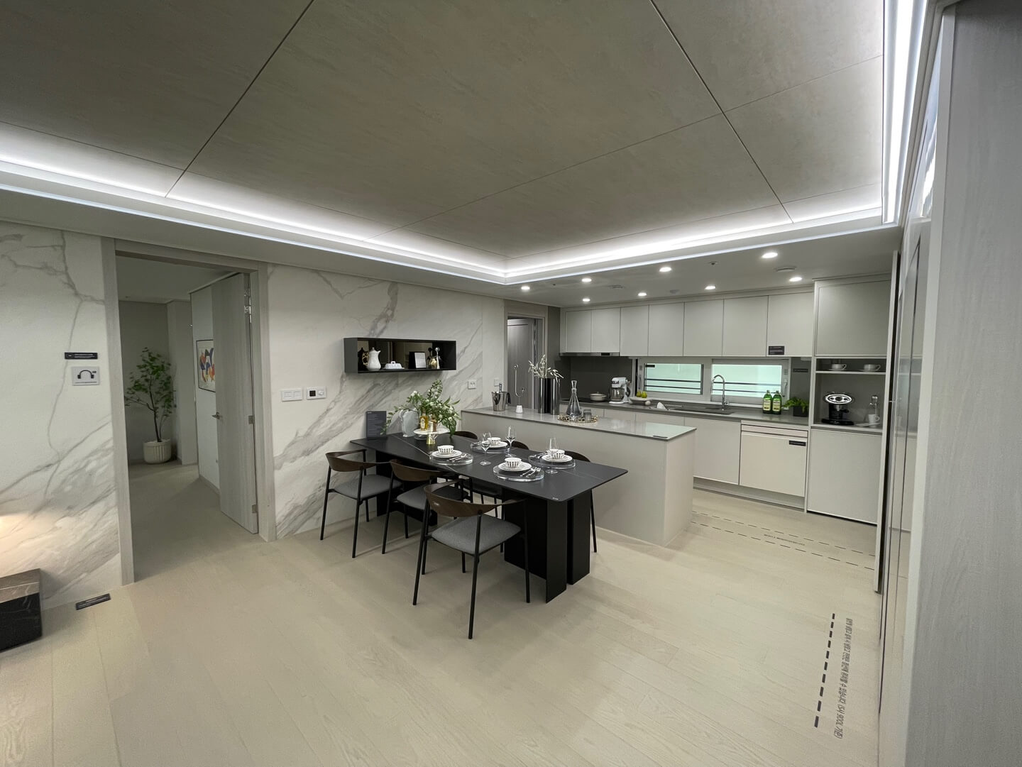 수납공간도 뛰어나며, 팬트리, 붙박이장, 드레스룸을 기본 제공하여 실거주 만족도를 더욱 높였습니다. 가사 동선을 고려한 보조 주방 및 세탁실 등의 설계도 적용되어 주부들에게 높은 선호도를 보일 것으로 예상됩니다.