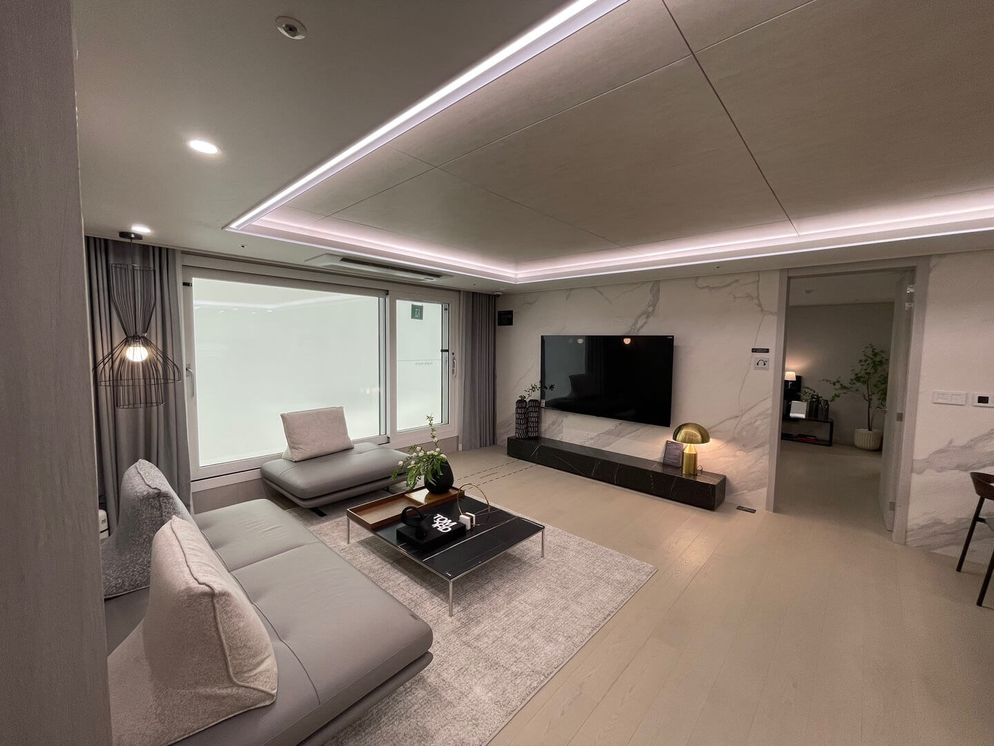 평촌 아크로 베스티뉴는 중소형 아파트에서 보기 힘든 고급 설계 및 마감재를 도입하여 차별화를 시도했습니다. 와이드 우물천장과 고급 아트월을 적용하여 주거 공간의 품격을 높였으며, 디밍 시스템을 도입해 조명의 밝기를 조절할 수 있도록 설계되었습니다.