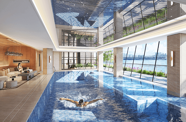 포제스 한강에는 호텔식 한강조망 사우나와 개별 파우더룸이 있는 냉탕, 온탕, 열탕 등 총 3개의 탕과 총 400개가 넘는 입주민 전용 락커를 제공합니다. 럭셔리 실내 수영장에는 고급 라운지가 마련되어 있으며, 피트니스 시설에는 PT/요가/필라테스실과 리라이너가 있는 '릴렉스존'을 마련하여 운동 중에도 개인적인 시간을 즐길 수 있도록 합니다. 또한, 150인치 스크린의 '시네마룸'은 최고급 음향과 상영시설을 갖추고 있어 파티룸으로도 활용할 수 있습니다.